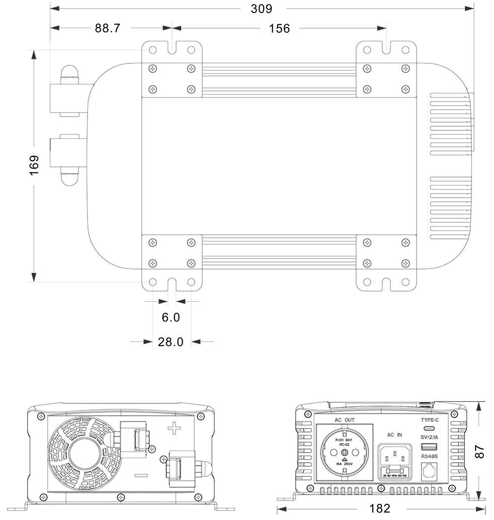Mehaanilised joonised: (309x182x87 mm)