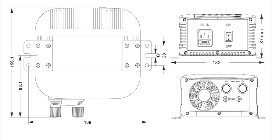 Mehaanilised joonised: (156,1 × 182 × 87 mm)