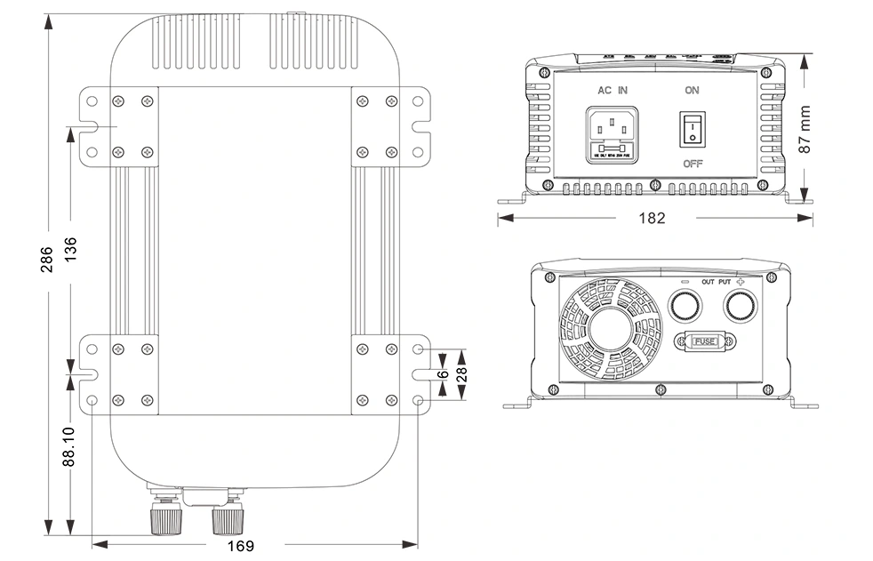 Mehaanilised joonised: (286 × 182 × 87 mm)
