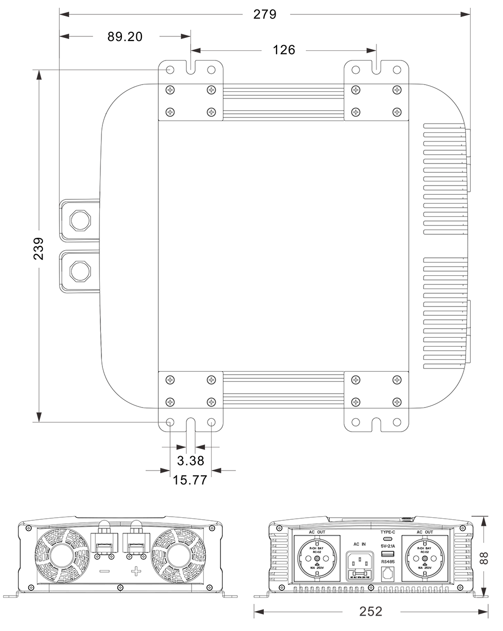 ● Väljundkaitse: lühis/ülekoormus/ületemperatuur/ülepinge